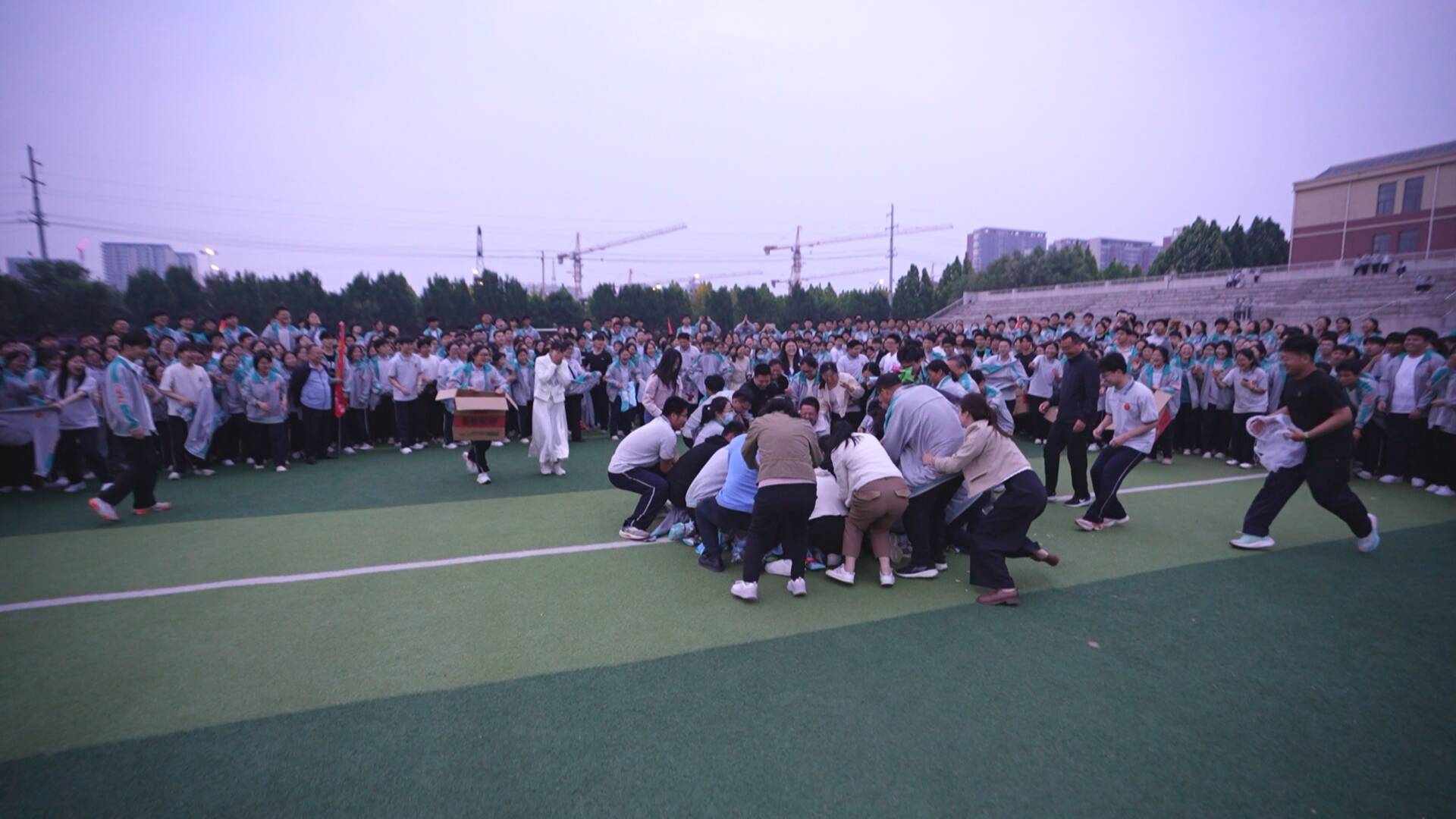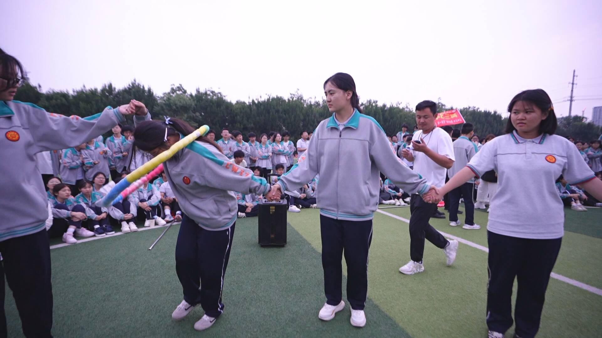 晚上六点,在结束一天繁忙的学习后,成武县第一中学的高三学子们齐聚操场,等待心理拓展活动开始。随着音乐响起,“抢板凳”环节率先点燃现场气氛,同学们绕着板凳快步移动,节奏紧张又刺激,现场欢呼声不断。紧接着,“一圈到底“的团队协作挑战与趣味横生的抢零食游戏轮番上演,欢乐氛围感染着在场每一个人。